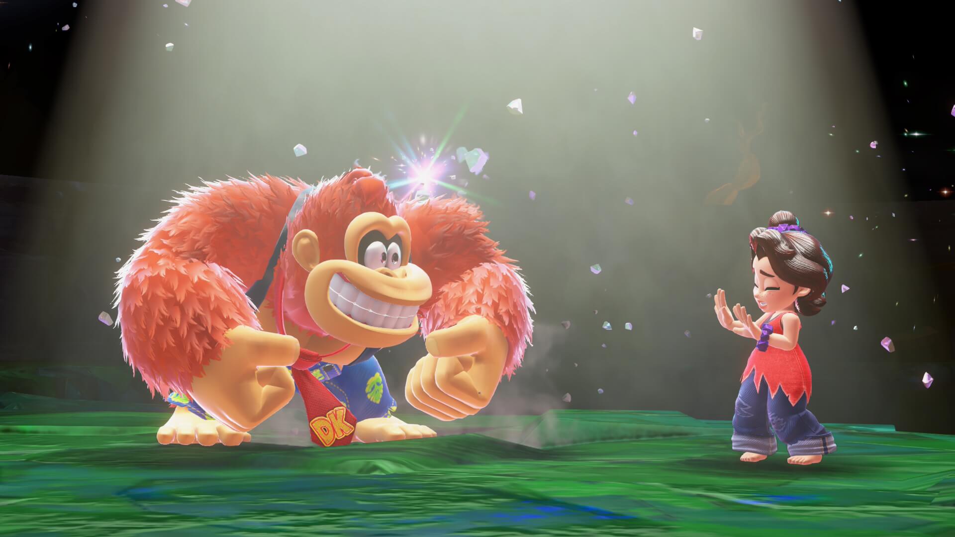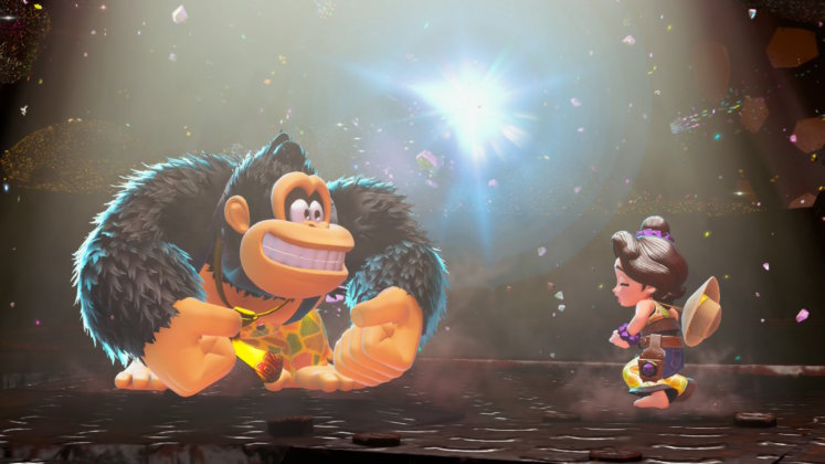 Una sorpresa que estuvo bastante bien guardada hasta poco tiempo antes del lanzamiento del juego fue la inclusión de una joven Pauline, quien es una vieja conocida de la franquicia pero que tuvo paso por distintas etapas. Ahora, es una cantante adolescente que es rescatada por Donkey Kong (la ironía, no?) y que lo ayudará en su aventura. Pero su presencia no es solamente estética, ya que además de tener un papel central en la historia, es un personaje jugable con un segundo mando ayudando a Donkey Kong a destruír el entorno con su voz. No sólo eso, sino que en ciertos momentos donde descansemos en una cama podremos tener una “conversación” donde Pauline nos abrirá su corazón y nos expresará emoción, miedo, ansiedad y más.