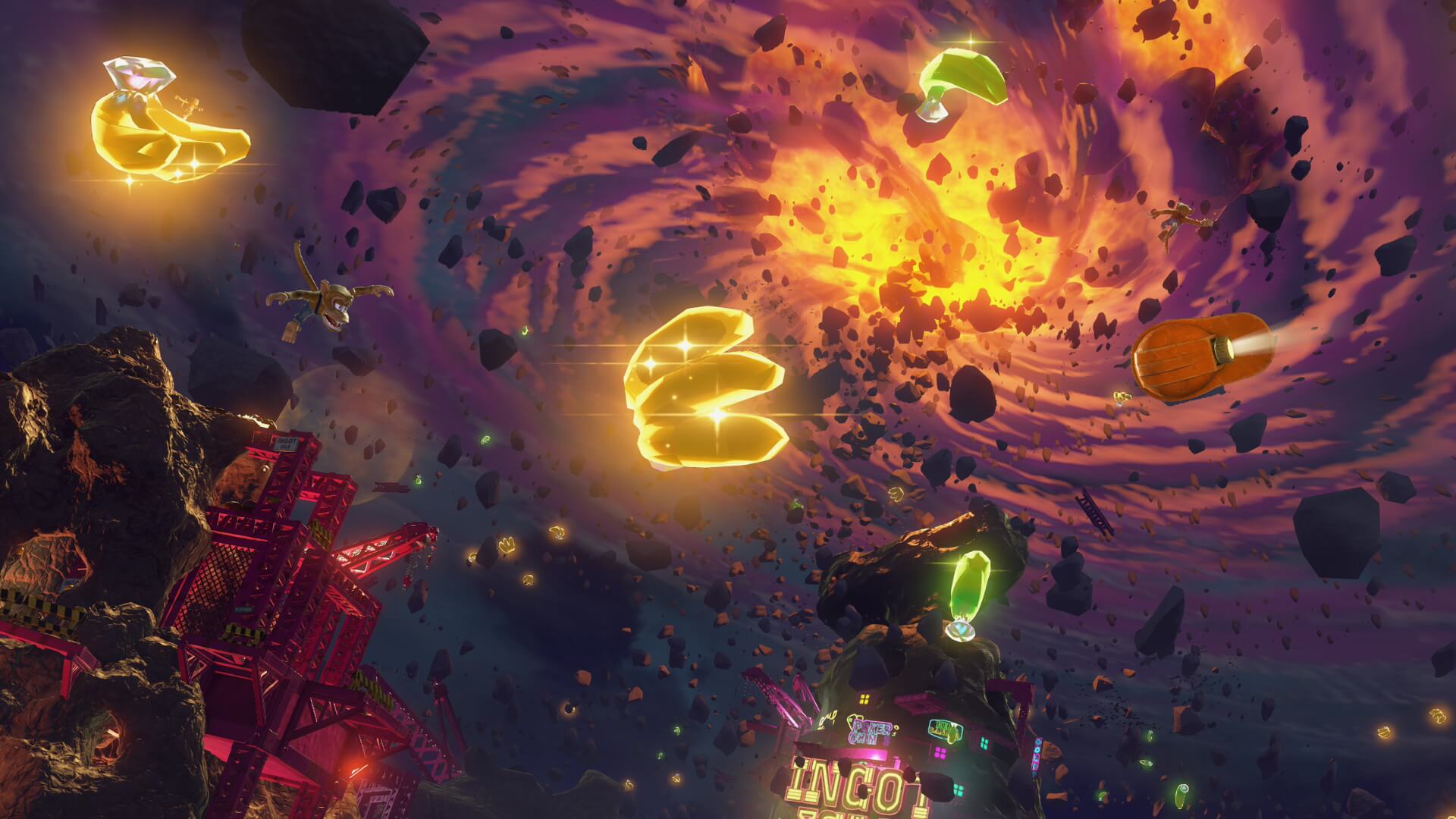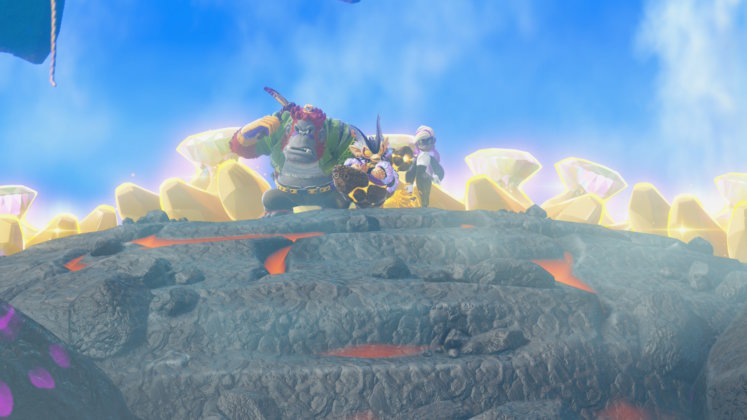 Las gemas, como les decía, se encuentran a lo largo de los distintos estratos, pero además podremos obtenerlas al derrotar a los jefes finales de cada ubicación, cumpliendo con pedidos específicos de presonajes, abriendo agujeros para bajar a otros niveles o bien ingresando a portales que nos llevarán a desafíos específicos que van desde derrotar a cierta cantidad de enemigos dentro del tiempo establecido, completar circuitos sorteando obstáculos o avanzar por niveles plataformeros que los más veteranos de la franquicia reconocerán al instante, entre otros. Realmente el abanico de posibilidades es muy grande y realmente no se siente repetitivo ni tedioso, sino que cada nivel nos deja con una sensación de querer más. Si es verdad que al centrarse más en la acción y los golpes, los puzzles quedan medio relegados; un par de desafíos más de este estilo hubiese sido muy bien recibido.