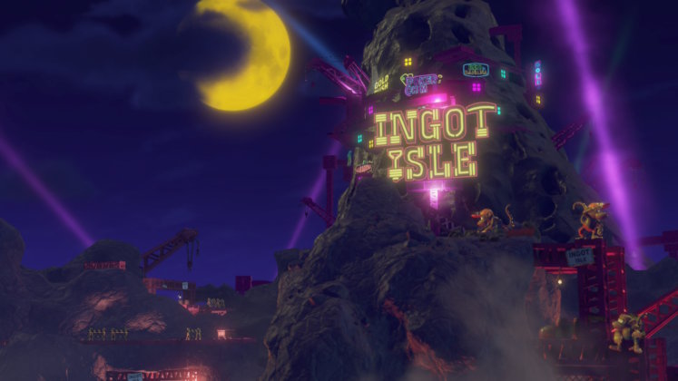 El juego inicialmente fue pensado para Nintendo Switch, pero luego mutó a una versión nativa de Nintendo Switch 2 por parte del equipo de desarrollo y esto me parece un gran acierto. Aunque hubo juegos que hicieron magia con el hardware de la Switch, lo cierto es que el nivel de destrucción de los escenarios que nos plantea Donkey Kong Bananza hubiese sido un dolor de cabeza, tanto para los desarrolladores como para los jugadores. Salvo en momentos puntuales, el juego no tuvo caídas de frames y eso que por momentos el nivel de destrucción puede ser impresionante. Al poder romper todo, puede pasar que con la cantidad de elementos en pantalla el juego sufra: no es el caso. Lo único, y totalmente entendible, es la dificultad que tiene la cámara de posicionarse cuando rompemos hacia abajo, resultando molesto ver hacia dónde nos dirigimos, pero al cabo de un tiempo aprendemos a ubicarnos.