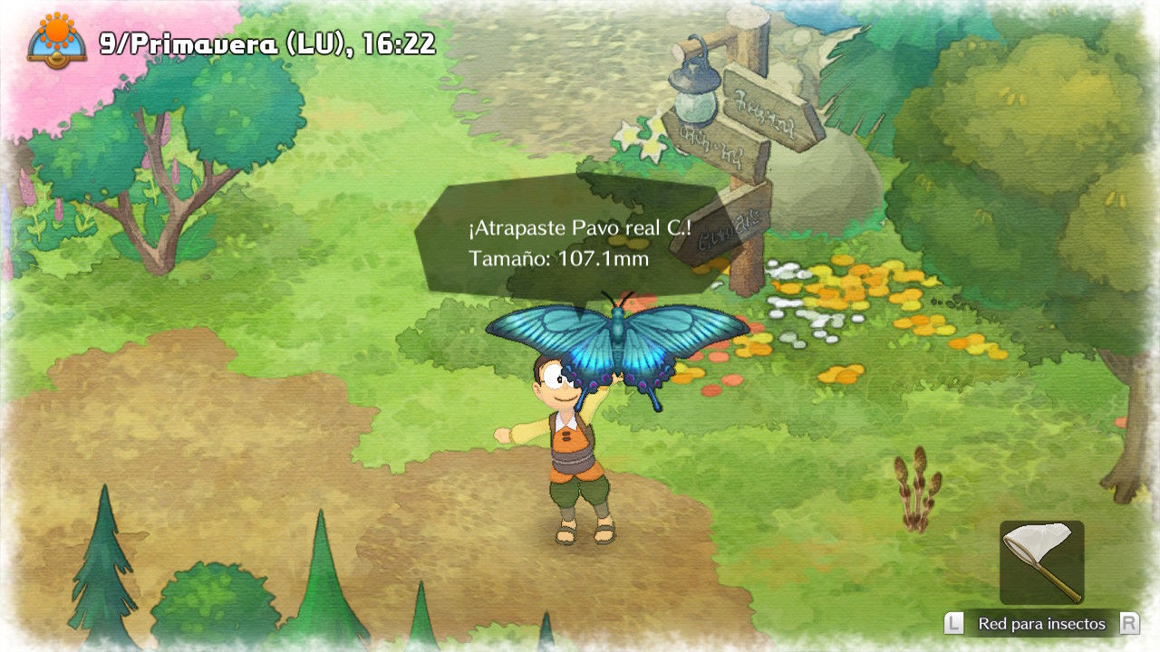 A medida que vayamos vendiendo los objetos que encontremos y lo que produzcamos en nuestra granja, tanto con las semillas que compremos (o nos regalen) como con los animales que podremos comprar una vez que tengamos un poco más de liquidez, podremos aumentar el tamaño de nuestra mochila para guardar cada vez más cosas, como la caña, el pico o hasta la red para atrapar insectos. Los peces e insectos que Natura tiene para ofrecernos variarán dependiendo de la hora del día y la estación en la que nos encontremos, por lo que será todo un desafío si queremos atrapar a todos. Un detalle interesante que ofrece Doraemon: Story of Seasons está centrado en la pesca: si nos quedamos pescando mucho tiempo en el mismo lugar, los peces se acostumbrarán a la presencia de Nobita y no picarán más, lo que nos obligará a buscar otro lugar de pesca.