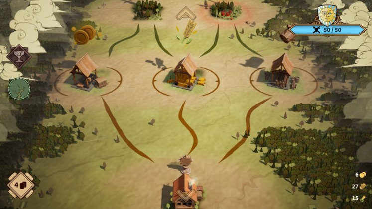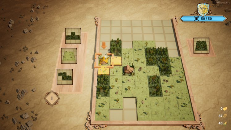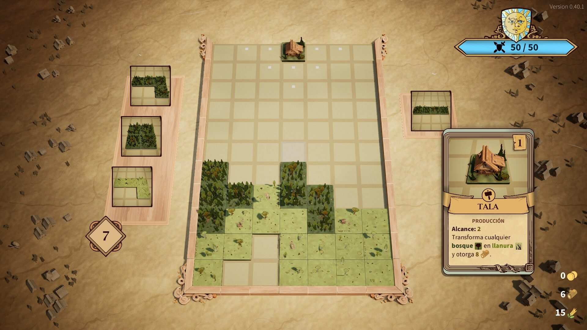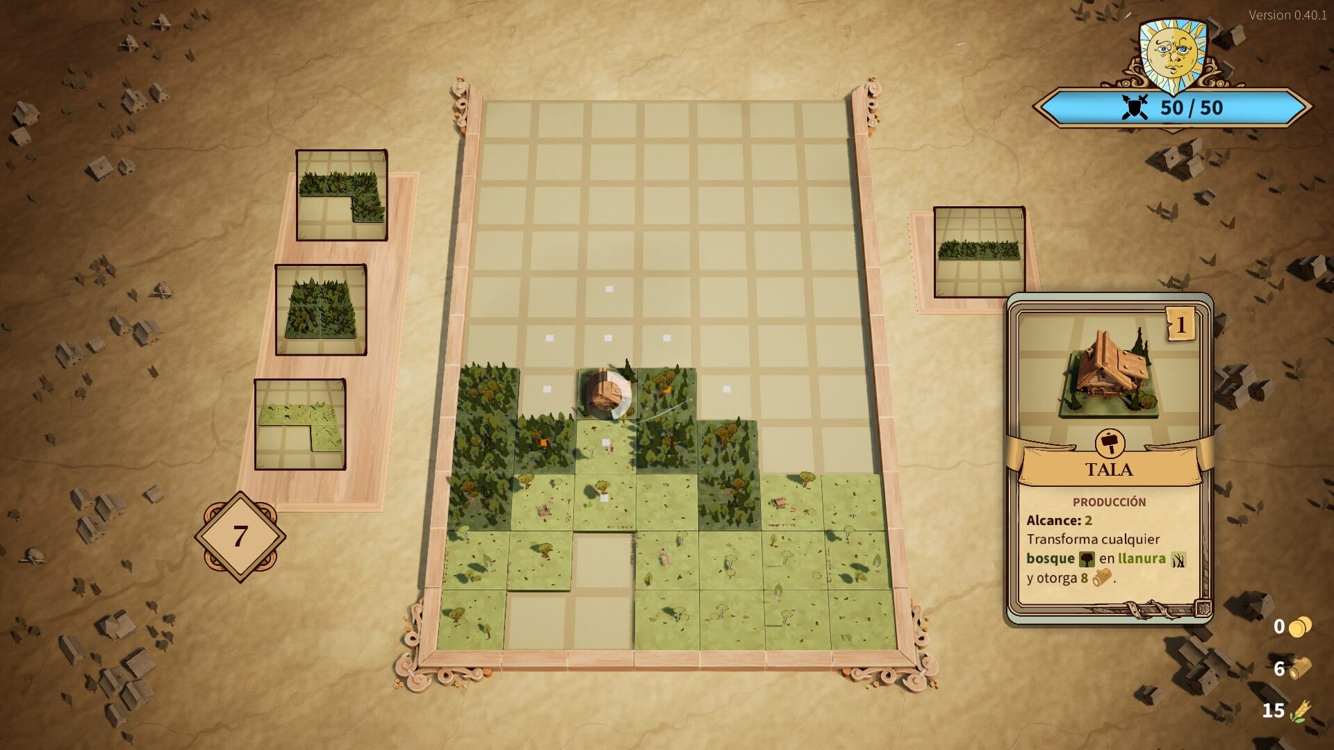 En Drop Duchy, el objetivo no es eliminar líneas, sino avanzar en una cruzada para derrocar a los enemigos y construir un reino. Si bien lo interesante de cada partida que hagamos está en unir las fichas en forma de un tetromino, no se basa solo en eso, y tampoco en desaparecerlas al completar filas. Las filas que hagamos se mantienen y se transforman en terreno útil como bosques, ríos o llanuras, y de ellas se obtienen recursos esenciales como madera, trigo o piedra, por ejemplo. Estos recursos serán los que nos sirvan para mejorar nuestras estructuras armamentísticas y de recolección, que serán básicamente cartas. Esta mecánica cambia por completo el enfoque tradicional del género “tetris” que podíamos conocer y amar. Y la mejor parte, es que no lo cambia para mal, sino que lo potencia.