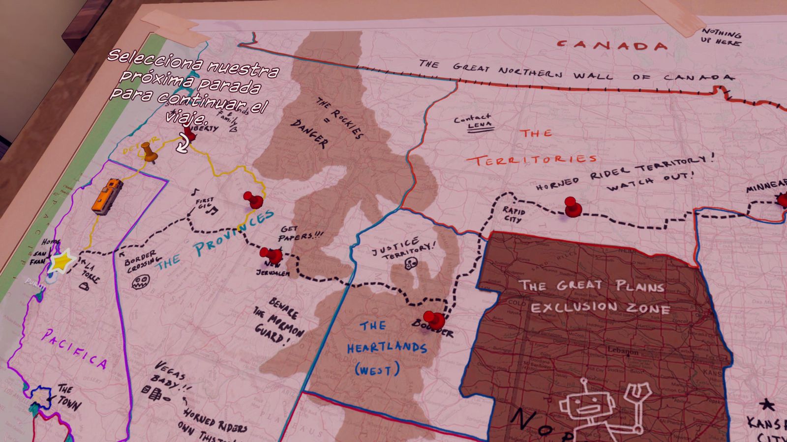 Pero como decíamos al principio, lo más importante del juego son las palabras. Y, al ser un viaje por la carretera donde tendremos mucho tiempo para concer a nuestros compañeros, aprovecharemos las paradas que realizará la banda en cada uno de los campamentos para conversar con ellos y así modificar su relación con Pax. Podremos aprovechar para pedir disculpas por una situación mal llevada, o bien seguir tirando de la cuerda y mantenernos firmes en nuestra convicción para ver hasta donde nos lleva. Pero además, en ciertos momentos de la historia podremos dar regalos a nuestros compañeros que, dependiendo el momento elegido, sumarán puntos o bien los restarán. Deberemos ser cuidadosos con esto.