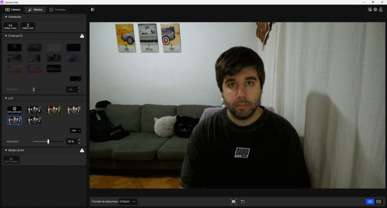 Una función que me encantó es la posibilidad de usar LUTs. Podés aplicar filtros de color cinematográficos directamente desde el software para darle a tu stream una estética única sin tocar el OBS.