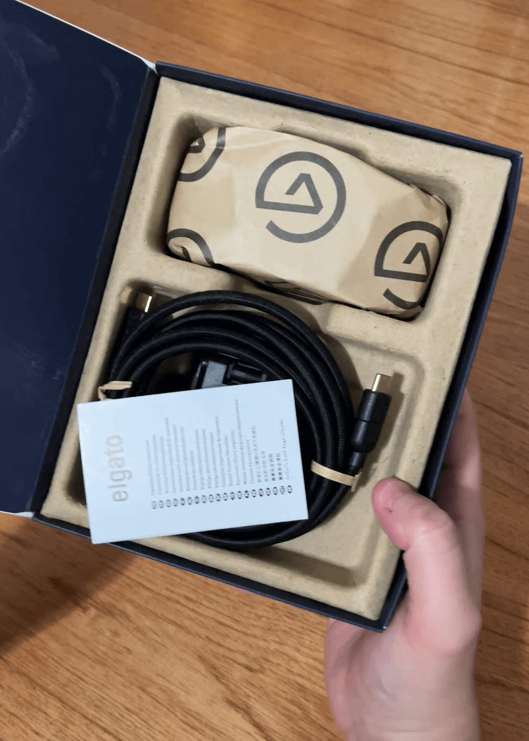Al abrir la caja, Elgato mantiene su línea: empaquetado premium, limpio y directo al grano, producto de materiales reciclables (algo que cada vez es más frecuente en marcas de periféricos como estos). Dentro encontramos la cámara, un cable USB-C a USB-C de buena calidad (fundamental para la transmisión de datos en 4K) y el soporte de pinza para el monitor.