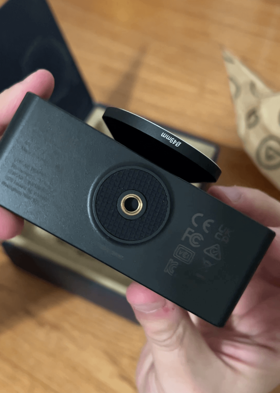 Lo primero que llama la atención es su diseño. Se aleja de las webcams tradicionales planas; aquí tenemos un cuerpo robusto con un objetivo de gran tamaño. De hecho, cuenta con una rosca de 49mm, lo que es un enorme punto a favor porque nos permite instalar filtros ND o polarizadores físicos, igual que haríamos en una cámara profesional.
