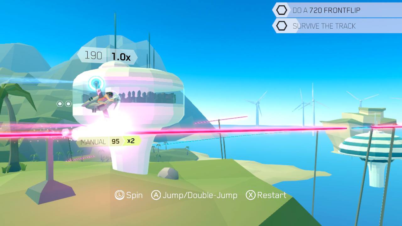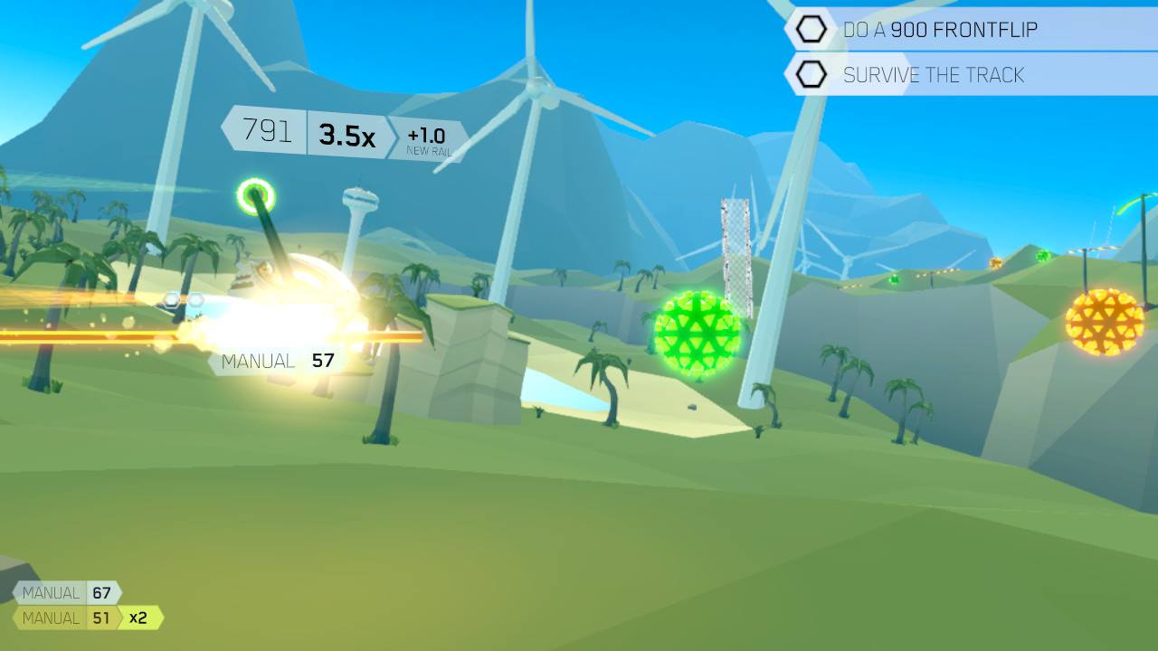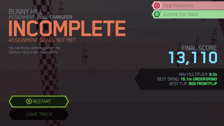 Una parte del juego que encontré algo que faltaba fueron las misiones secundarias, pequeñas tareas que te devuelven a los niveles completados previamente, pero con un solo objetivo como “Hacer un 720 frontal”. Estos se sienten como excusas débiles y obvias para hacerte volver al jugar. No importa cuán sólido sea el diseño de niveles en realidad.