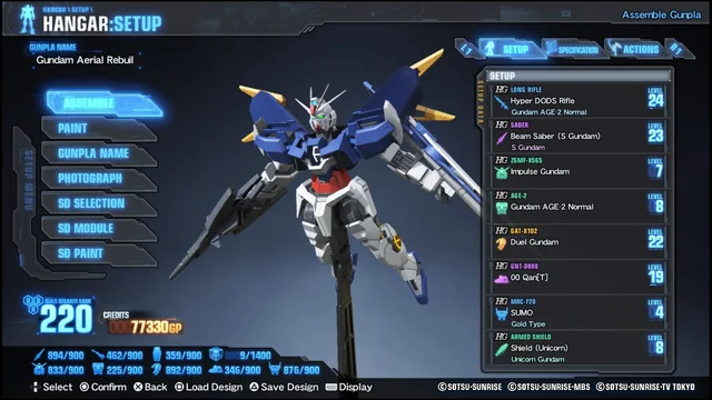 Uno de los aspectos más destacados de Gundam Breaker 4 es su extenso sistema de personalización. Los jugadores tienen la libertad de modificar cada detalle de sus Gunpla, desde la cabeza hasta las armas, las piernas y los escudos. Esta amplia gama de opciones permite crear mechas únicos, adaptados a las preferencias y estilos de juego de cada jugador. A pesar de que algunos modelos, como los SD Gunpla, no son tan abundantes como uno esperaría, la diversidad y calidad de las opciones de personalización son bastante e impresionantes.