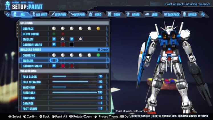 Uno de los aspectos más destacados de Gundam Breaker 4 es su extenso sistema de personalización. Los jugadores tienen la libertad de modificar cada detalle de sus Gunpla, desde la cabeza hasta las armas, las piernas y los escudos. Esta amplia gama de opciones permite crear mechas únicos, adaptados a las preferencias y estilos de juego de cada jugador. A pesar de que algunos modelos, como los SD Gunpla, no son tan abundantes como uno esperaría, la diversidad y calidad de las opciones de personalización son bastante e impresionantes.