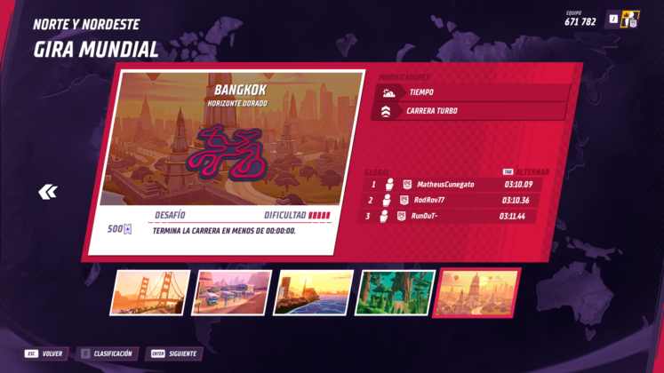 Antes de continuar con la experiencia de juego, hay que mencionar el modo multijugador de Horizon Chase 2, que es un gran punto a favor, permitiendo hasta 4 jugadores en simultáneo. El título tiene la posibilidad de elegir entre el modo local si estás físicamente con otros jugadores o el modo en línea. El acceso al modo en línea se realiza a través de un código de equipo, proporcionado por el creador de la sala, y dentro de la competición, los jugadores pueden seleccionar circuitos de la Gira Mundial, Desafíos, y hasta “salas privadas”. Lo bueno es que no hay restricciones en cuanto al acceso a contenido, es decir, que si alguien del grupo aún no visitó una ubicación, podrá jugarla igual en la campaña solo que no se guardará ese progreso. Esto permite más allá del competitivo, un modo cooperativo encubierto, donde amigos juegan una Gira Mundial juntos.