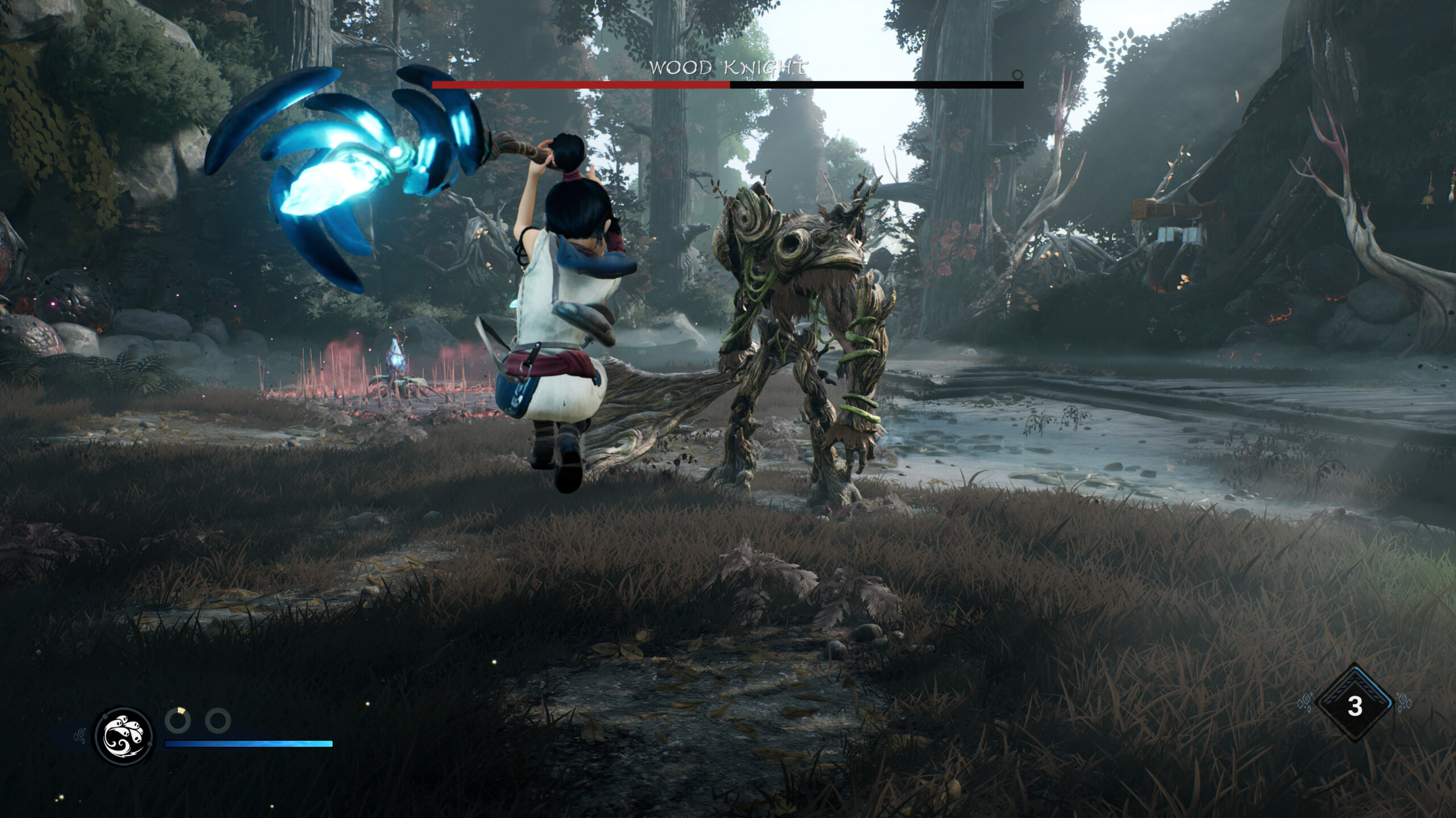 La jugabilidad en Kena es una combinación de exploración, resolución de acertijos y combate. Kena utiliza un bastón mágico que puede ser empleado tanto para atacar como para resolver acertijos. Los combates son dinámicos y fluidos, con mecánicas que permiten al jugador combinar ataques cuerpo a cuerpo con habilidades mágicas. A medida que avanzas, desbloqueas nuevas habilidades que enriquecen la jugabilidad y ofrecen diferentes enfoques en el combate. No es un juego difícil, aunque ciertamente no está pensado para los niños.
