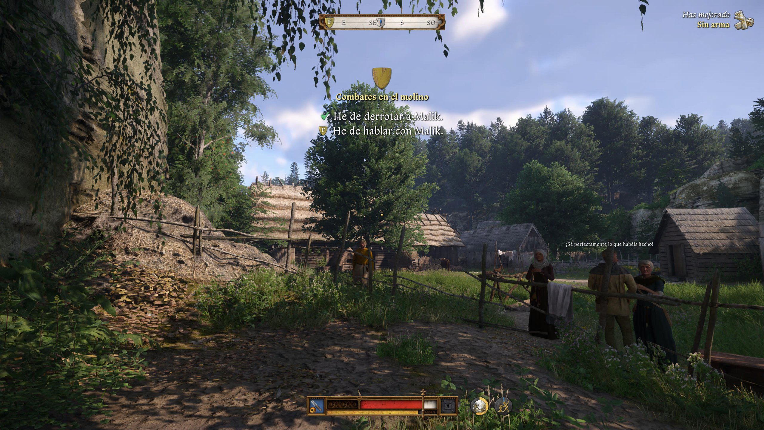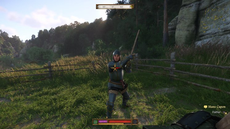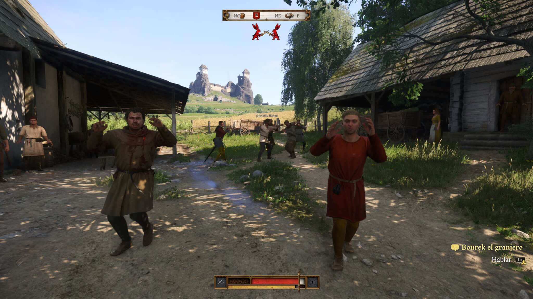 Pero esto no es sencillo sin comida, armas ni armadura. Pues allí comienza la verdadera diversión de Kingdom Come: Deliverance II. Tenemos un objetivo inicial que da inicio a la verdadera historia, asistir a una boda, y para ello podremos elegir trabajar con el herrero o con el molinero para que nos hagan entrar. Igualmente no tenemos la obligación de seguir la historia apenas comenzamos, ya que podemos recorrer los mapas del juego a nuestras anchas haciendo lo que nos parezca, ya que tenemos total libertad para elegir lo que queremos hacer: recorrer para quitar la niebla del mapa, visitar las casas de baño (si tenemos los groschen necesarios), robar, hurtar, pelear, cazar, todo lo que se nos ocurra. Pero siempre deberemos tener en cuenta algo: no debemos ser vistos realizando acciones poco honestas. Si nos atrapan o si nos reconocen, deberemos enfrentarnos a las consecuencias.
