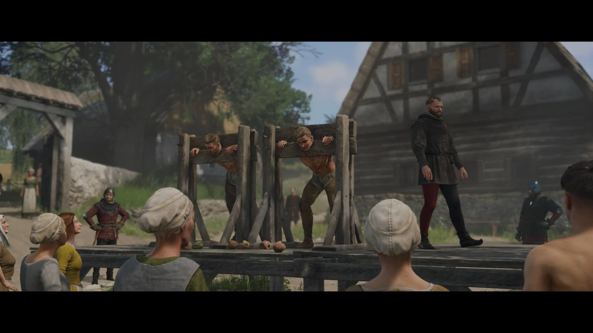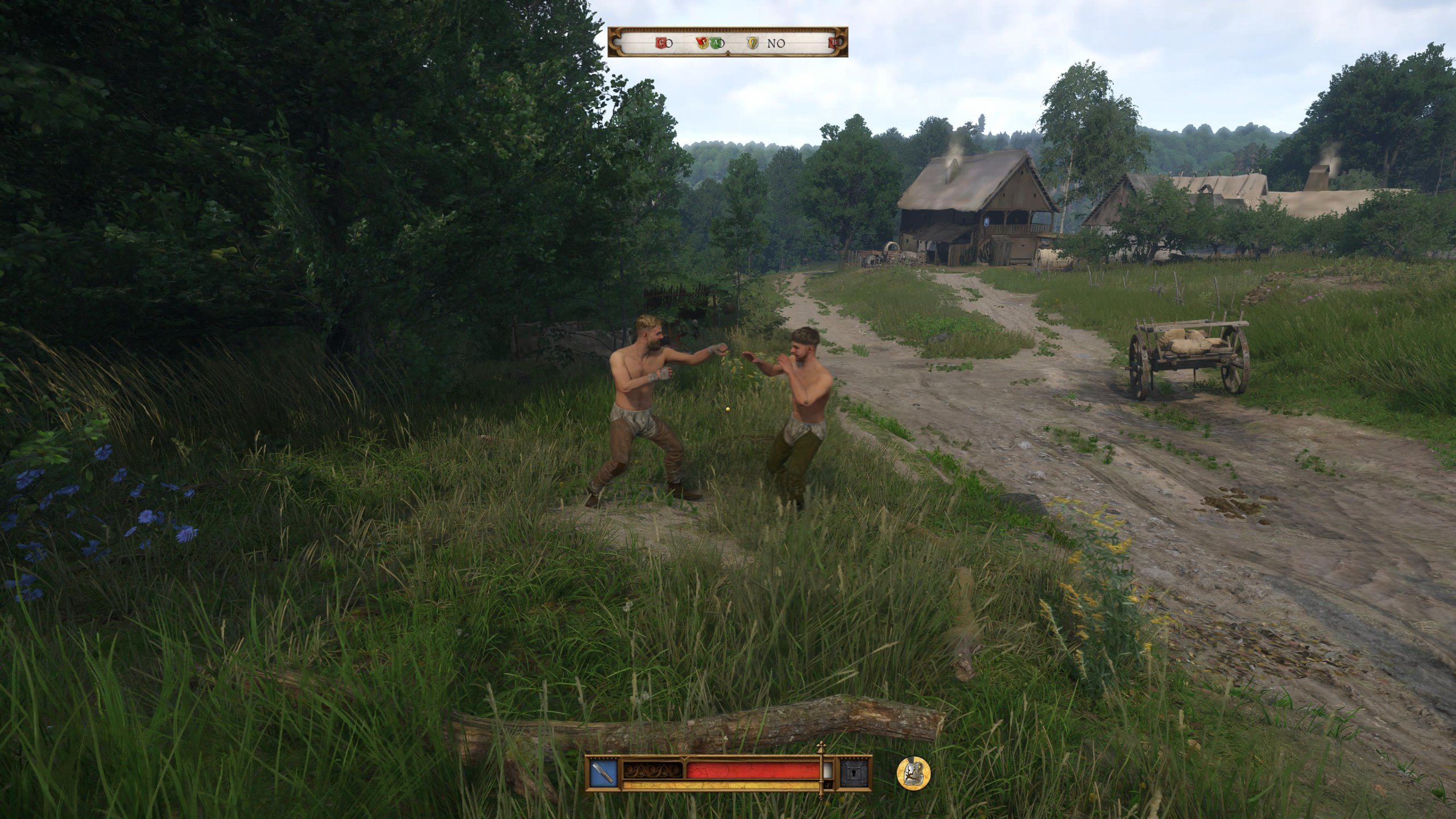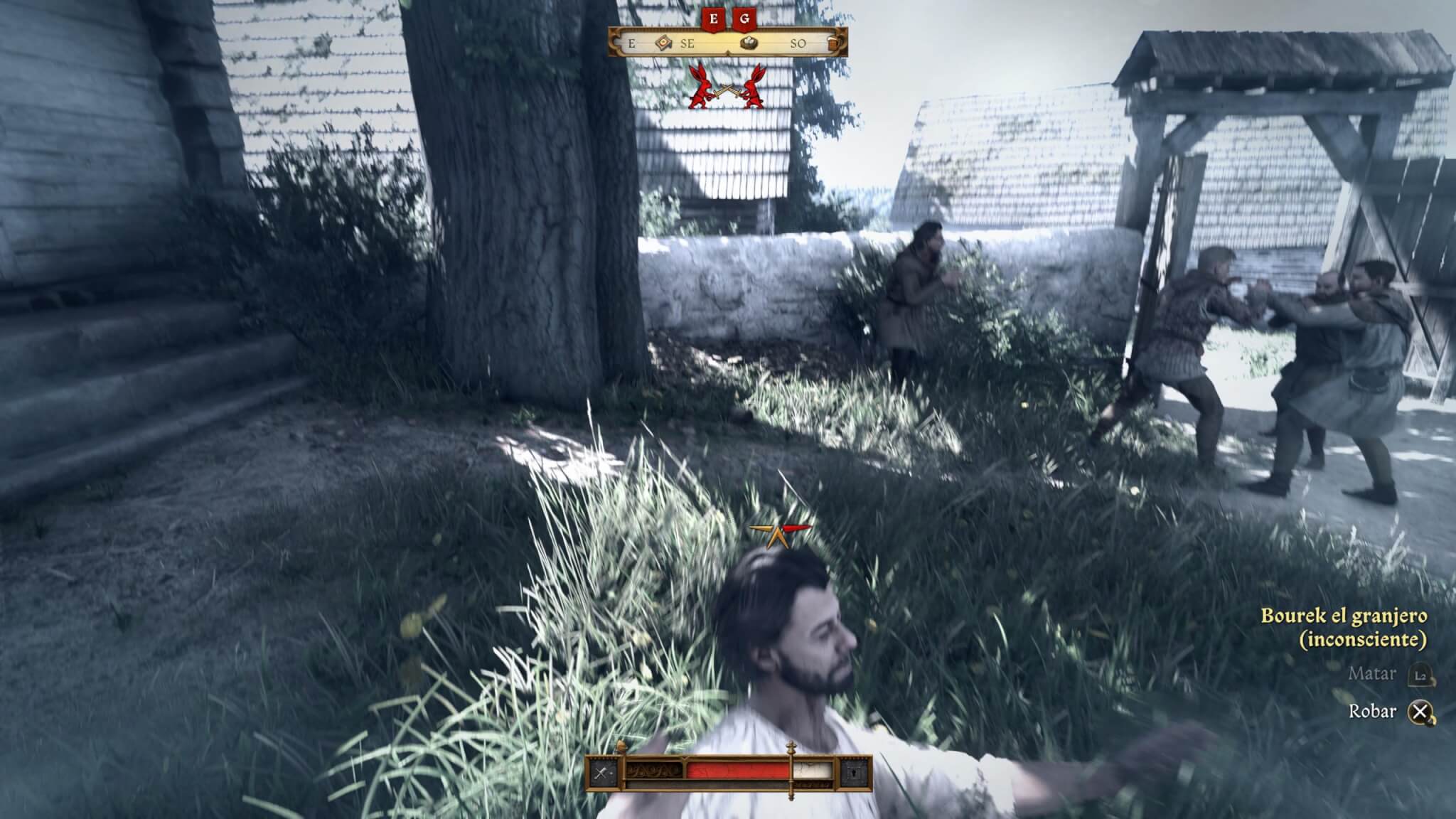 Quiero volver a resaltar el nivel de detalle que Warhose Studios le dio al título. Los alimentos irán perdiendo frescura a medida que pasa el tiempo, y si comemos algo en mal estado podremos terminar envenenados y, por consiguiente, muertos; si alguien nos ve salir de una casa en la que hayamos robado algo, pero sin haber visto el acto en si, nos denunciará ante la ley y cuando volvamos al pueblo tendremos que decidir qué hacer: aceptar nuestro castigo y pagar de la forma que sea, pelear o, a veces una decisión totalmente errada, correr. Si asesinamos a alguien y nos atrapan quedaremos marcados, lo que redundará en una pérdida estrepitosa de nuestra reputación allí donde vayamos, lo que repercutirá en nuestras relaciones con las pueblerinos y los mercaderes, entre otros. Además, si estamos marcados y volvemos a asesinar, veremos una escena donde Henry irá al verdugo directamente. La reputación es imporante y cada acción cuenta, ya que si tenemos buena reputación podremos conseguir obsequios o descuentos en productos de los mercaderes locales. el acercamiento a los lugareños es importante también, ya que si les hablamos con Henry todo ensangrentado o con la espada desenvainada lo único que lograremos será asustarlos. Los detalles, como les decía, están muy bien cuidados.