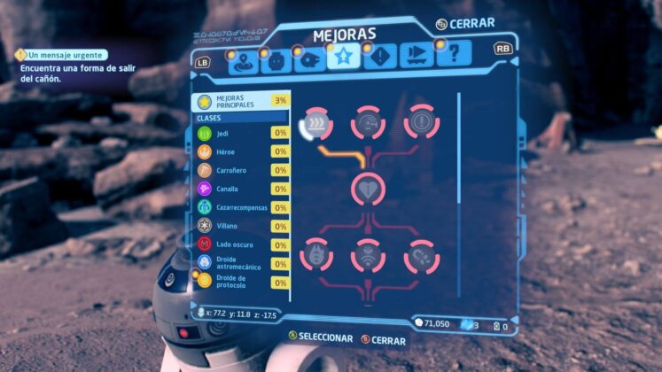 Si entramos en el terreno de la jugabilidad, quizás no veamos grandes cambios con respecto a últimas entregas, pero sí pequeñas adiciones como un árbol de mejoras por “clase” (Jedi, Sith, Androides, Humanos, etc), que permite incrementar los atributos de ciertas acciones que son específicas de cada clase. Por ejemplo, los Androides pueden hackear terminales o dispositivos más rápido, o los Jedi hacen más daño con los ataques con sable láser, entre tantas mejoras.