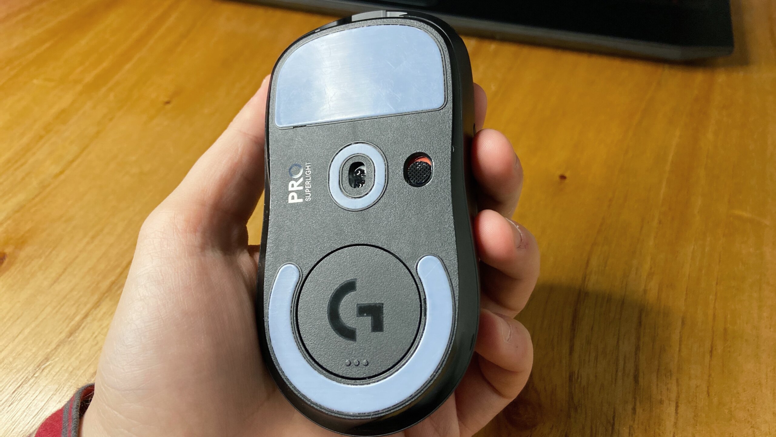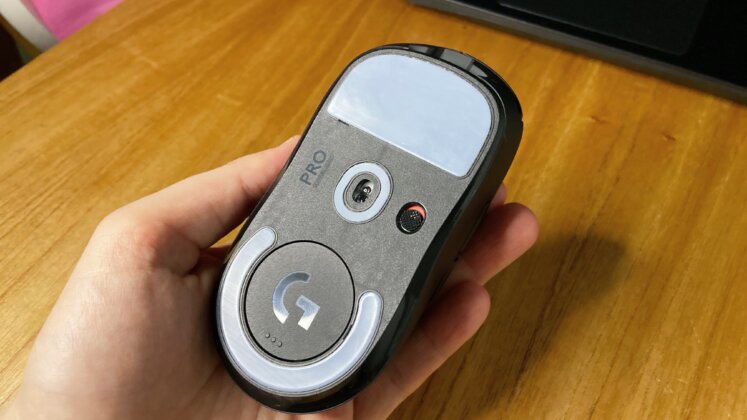 Como mencioné anteriormente, el diseño es bastante simple. Cuenta con 5 botones los cuales son configurables desde la aplicación de escritorio de Logitech G Hub, el logo de la marca en la parte de apoyo de la palma, y un práctico mecanismo de tapa imantada en la parte inferior (el compartimiento para el receptor de señal Lightspeed). También posee pies debajo de teflón, material utilizado para aislar y mejorar el deslizamiento extremadamente silencioso que posee. Si se desea, con la caja del ratón viene una tapa adicional que posee más teflón aún, de forma que los más experimentados o exigentes puedan aprovecharlo.