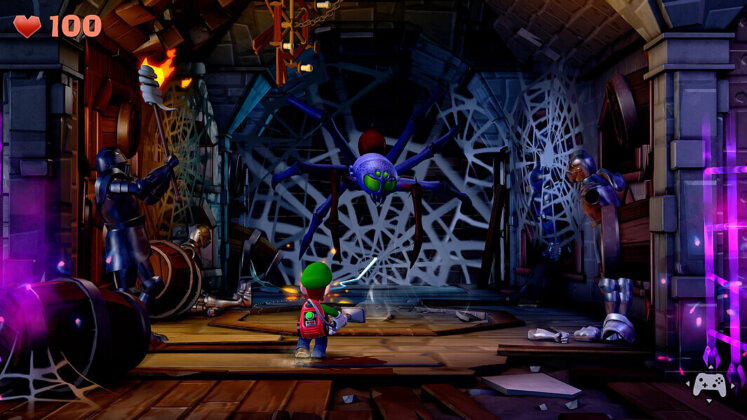 Los controles tuvieron mejoras con relación a su antecesor, pero hubo momentos en los que me costaba apuntar para el lado que quería. Se sentía como medio tosco el movimiento de girar mientras intentaba aspirabar fantasmas u objetos que no se encontraban a la vista de Luigi, sino del lado contrario.