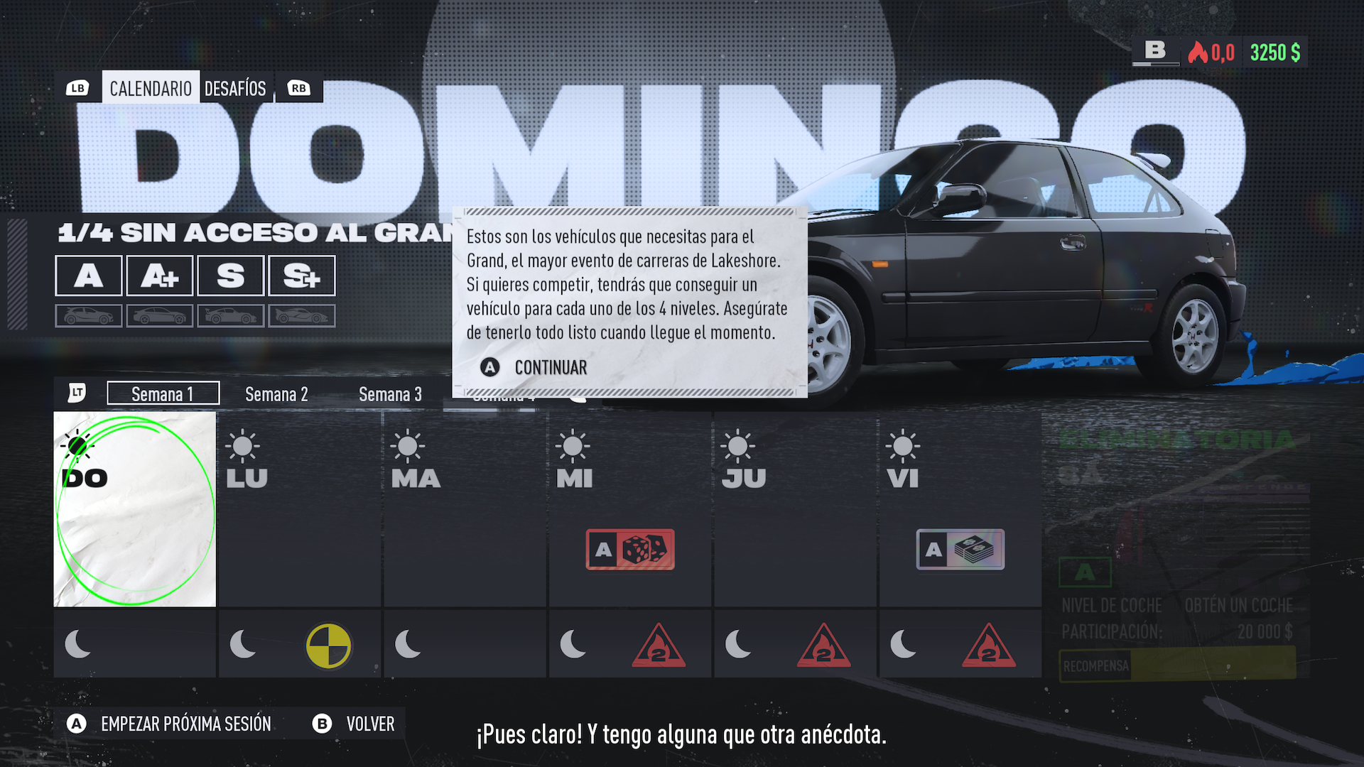 Como detalle de su jugabilidad, tendremos un calendario que nos marcará los próximos eventos más importantes y para esas fechas deberemos tener una cantidad monetaria asegurada para poder competir allí. Para ir recaudando esas sumas, evidentemente deberemos correr en diferentes encuentros que los veremos marcados en el mapa y estarán organizados en un ciclo día/noche. Cada vez que volvamos al garaje, guardaremos el dinero que hayamos ido ganando y, a su vez, se hará el cambio de horario.