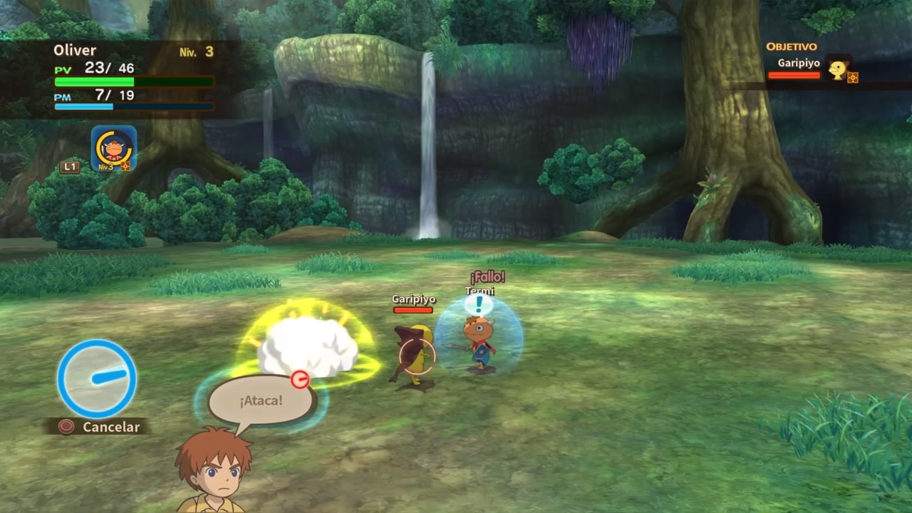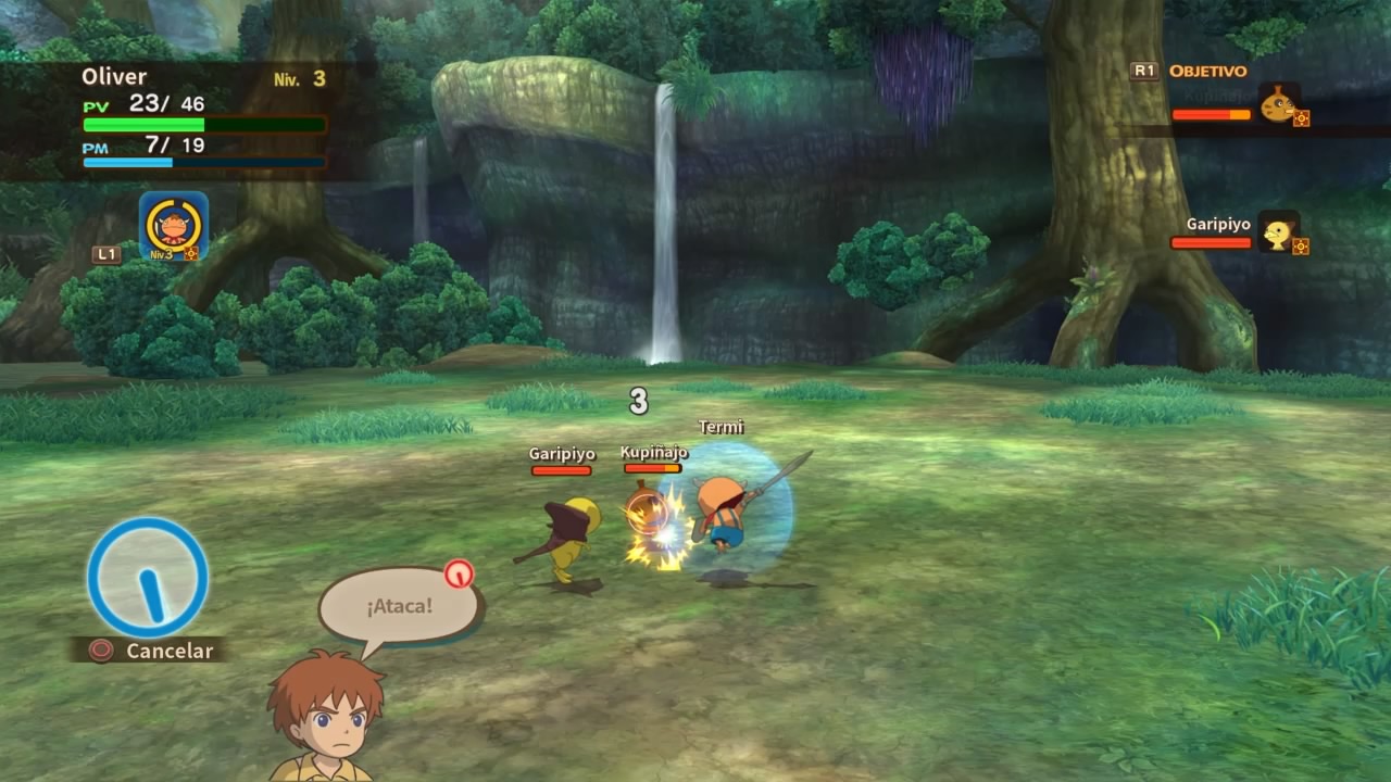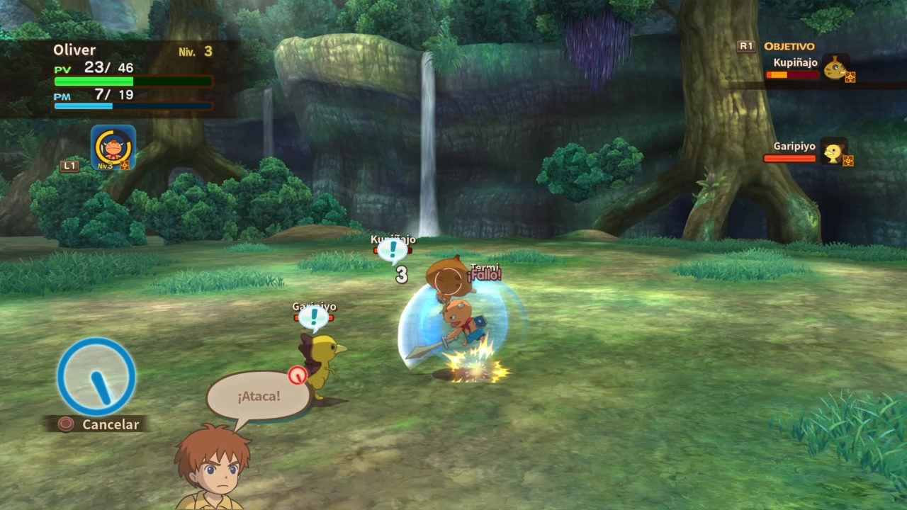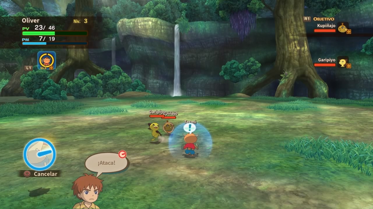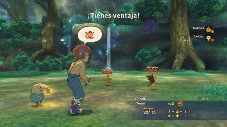 Los combates nos recordarán mucho a Pokémon, en el sentido de que nosotros como mago a la larga no vamos a pelear directamente. Dado a la existencia de unas criaturas que son guerreros del alma llamados “únimos”, ellos serán los encargados de luchar. Podemos controlarlos directamente, contamos con diferentes ataques físicos, magias y habilidades. A la larga vamos a poder forma un equipo compuesto por 3 personajes, junto a 3 únimos que capturemos en nuestra aventura. Por eso digo que la idea es como Pokémon, atrapar criaturas y cuidarlas para disputar combates. A su vez contamos con la posibilidad de realizar acciones con Oliver, como invocar hechizos y atacar cuerpo a cuerpo, pero la idea es que solo apoyemos al únimo.