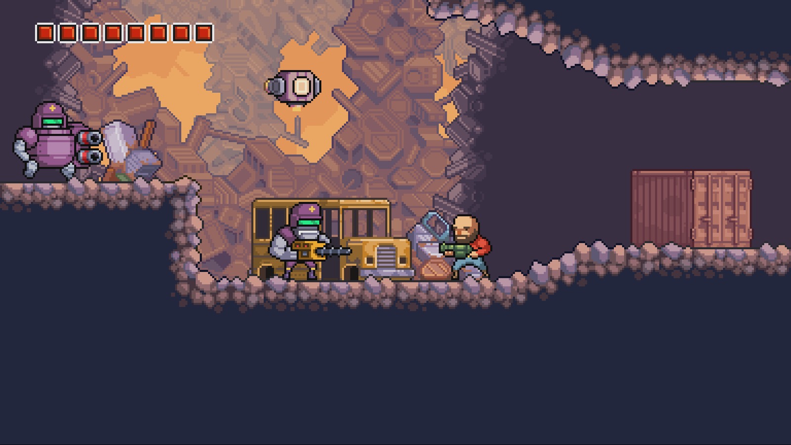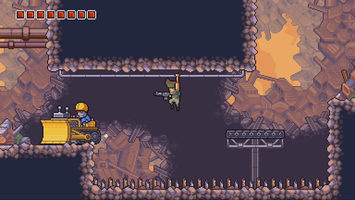 Como decía, el mapa se encuentra entrelazado en sus distintas secciones siendo una de las más importantes la ciudad de Tumbleweed donde tendremos nuestra base de operaciones, un lugar en el que podremos comprar mejoras para nuestras armas o comprar ítems para curarnos con las monedas que vayamos recogiendo de los enemigos, aumentar nuestro nivel de vida con las partes de cubos de vida que encontremos a lo largo del mapa o viajar en helicóptero a cualquiera de las zonas ya visitadas, aunque las opciones son limitadas. Como buen Metroidvania, habrá partes del mapa a las que solo podremos acceder una vez que tengamos las habilidades que correspondan, algo que deberemos recordar bien si queremos completar el juego al 100%.