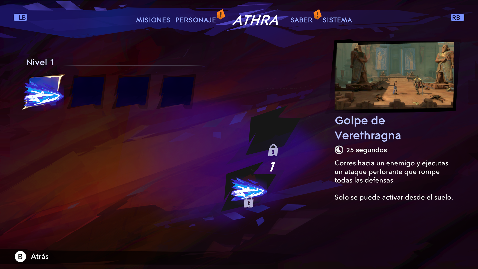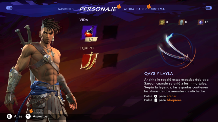 A medida que avanzamos en la trama, Sargon irá obteniendo diferentes habilidades que le permitirán recorrer el entorno más facilmente, como la posibilidad de hacer un dash o dejar una replica de sí mismo a la cual regresar con un salto temporal. Cada habilidad proviene de los fragmentos de una deidad que iremos conociendo a medida que avance la historia, y nos llevará a develar el camino de descubrimiento propio que realiza el protagonista, mientras enfrenta su pasado …. ¿y su futuro?. A estas habilidades se les suma las destrezas, que serán una especie de poderes especiales que podemos realizar con nuestra barra de Athra cargada (otra vez la influencia de juegos de pelea como los de Cyberconnect).