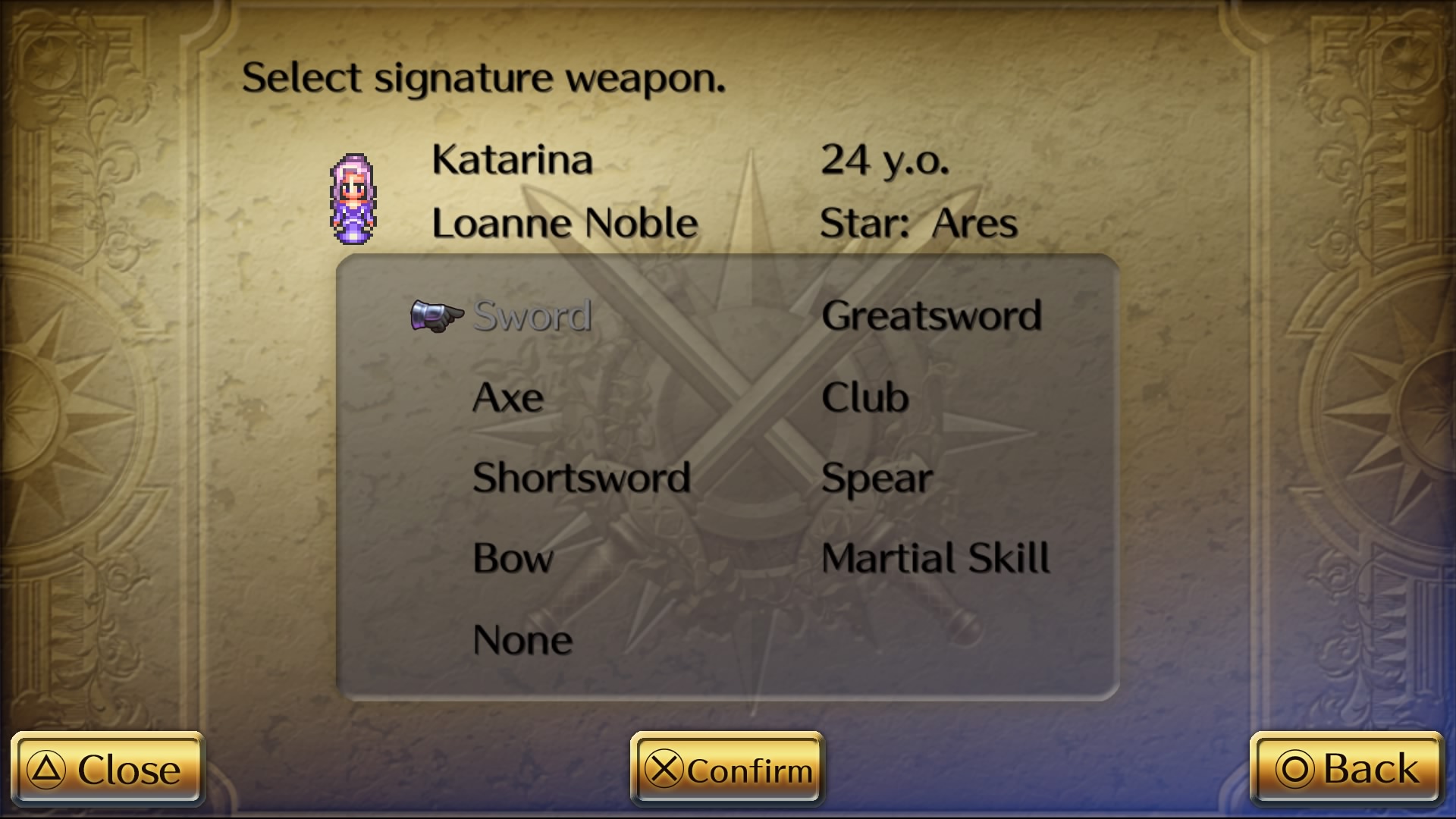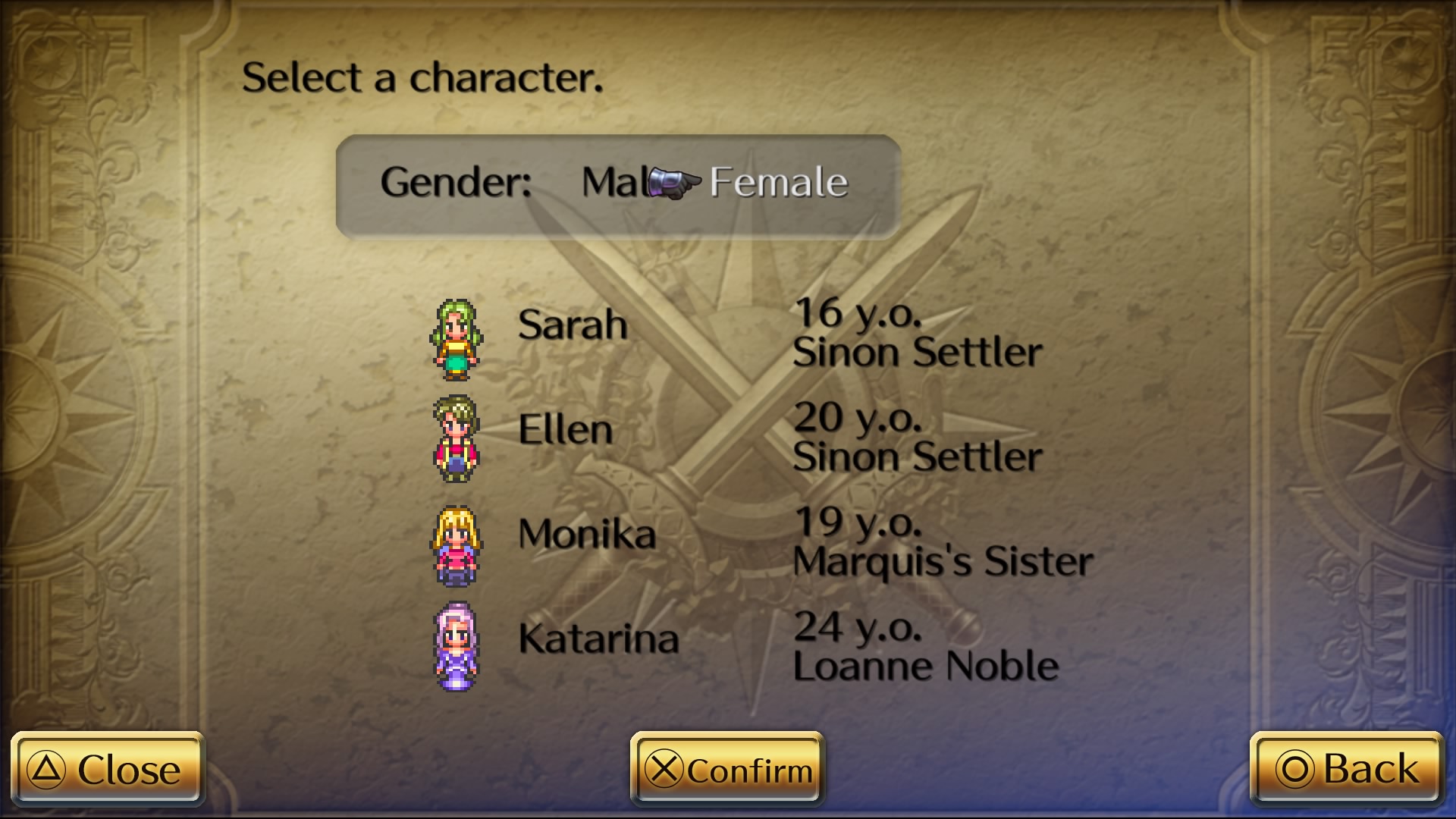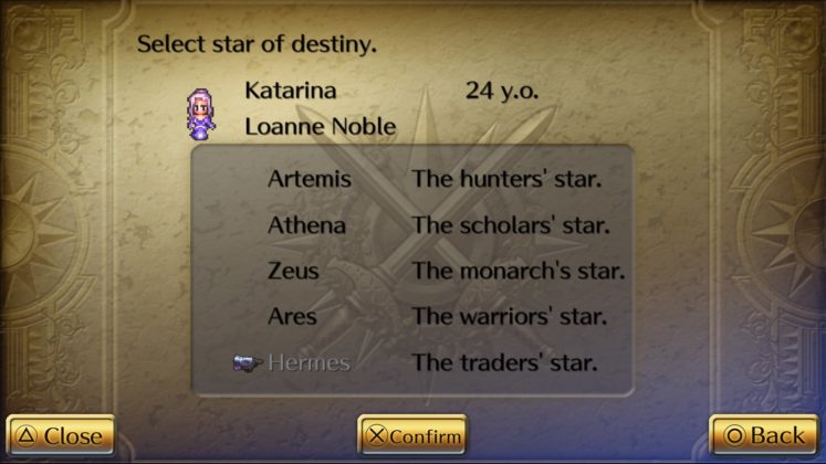 Los ocho protagonistas se dividen en cuatro hombres y cuatro mujeres con estadísticas y habilidades propias. Cada uno tendrá su propia historia totalmente distinta de las otras. Después de elegir el personaje, tendrás que optar entre varias “estrellas del destino” algo parecido a las clases de jugador (cazador, erudito, monarca, guerrero y mercader) y un arma (espada, hacha, dagas, arco, espadón, porra, lanza, artes marciales o ninguna).