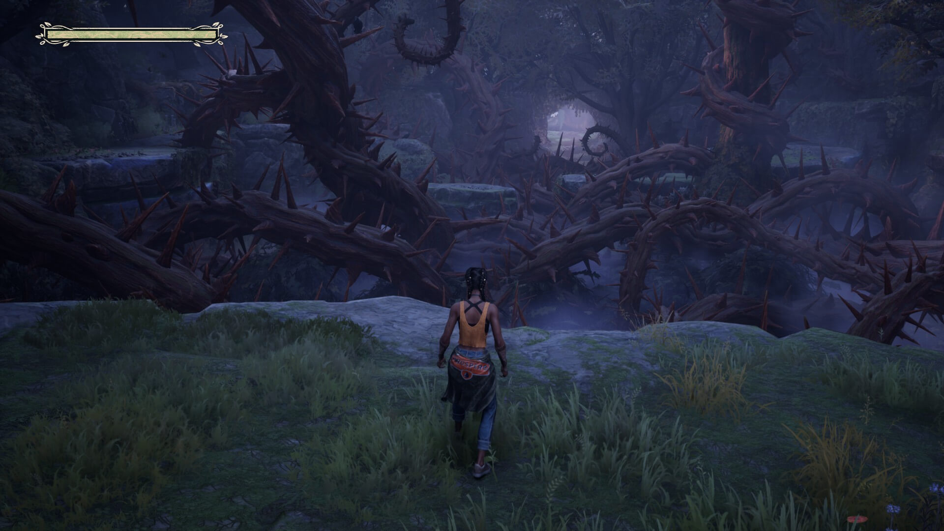 South of Midnight no pone sobre la mesa nada innovador en lo que a su género respecta. La mayor parte de nuestro tiempo recorremos distancias donde deberemos usar las habilidades de Hazel para llegar de un punto A hacia el B. Entre ellas, tendremos la posibilidad de evocar recuerdos del pasado para que se reconstruyan momentáneamente objetos y nos sirvan para continuar el paso, colgarnos cual liana con nuestros ganchos de tejer o controlar a nuestro fiel compañero Crouton, un peluche. Todas estas habilidades son parte del repertorio que usaremos también en batalla.
