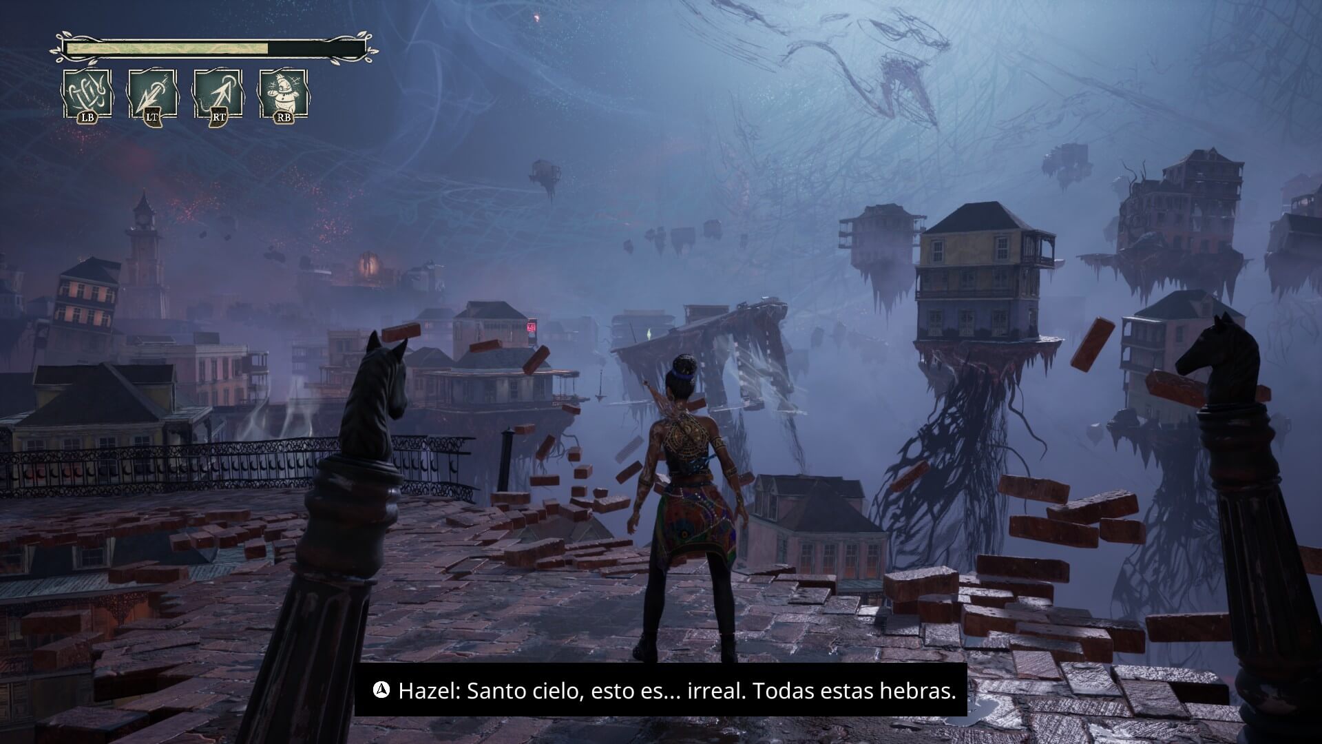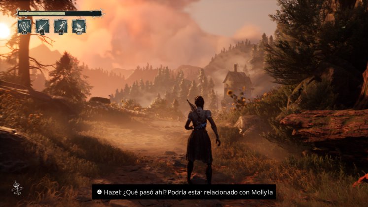 La historia nos relata como Hazel, una chica de un pueblo diminuto (literalmente hablando, solo 3 casas) pierde a su madre en un huracán que arrastra su casa de madera a la largo de la corriente de un río, y se propone a buscarla cueste lo que cueste por el extraño mundo pantanoso que recorreremos. Poco después de esto, nota la extraña presencia de “hilos” que se tejen por doquier, y que tras una breve explicación por parte de su abuela, Bunny, descubrirá que son las hebras del mundo, aquellas que conforman la realidad en la que vivimos. El puntapié está dado, la motivación para la aventura ya está, y ahora solo falta el cómo.