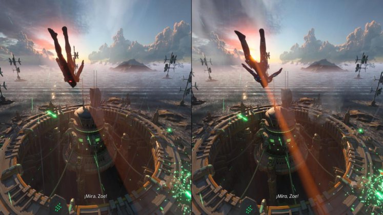 Como en It Takes Two, Split Fiction solo puede jugarse en cooperativo, lo que significa que necesitás un compañero sí o sí. Sin embargo, el juego ofrece un “Pase de amigo”, permitiendo que otra persona juegue sin necesidad de comprar una segunda copia. Además, esta vez hay crossplay, lo que facilita aún más encontrar un compañero con quien jugar. La pantalla sigue viéndose en conjunto para ambos, es decir que se facilita la coordinación en los puzzles, algo que es esencial y casi obligatorio en muchos casos.