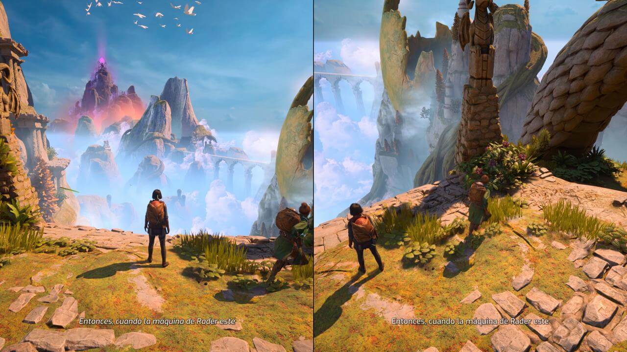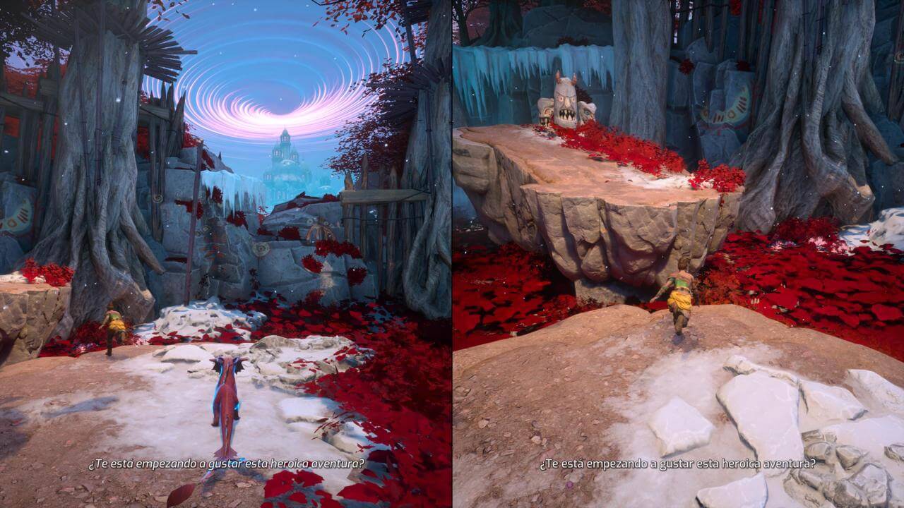 Si bien los personajes podrían haber sido más profundos o contar con otras motivaciones diferentes, la trama cumple su función de dar un hilo conductor que permite explorar una variedad increíble de mundos y mecánicas sin sentirse forzada. Realmente no es comparativa con It Takes Two, donde el sentimiento impregnado en cada acción que los protagonistas realizaban, empujado por el cariño y el deseo de no dañar a su hija, tenía tonos más tristes.