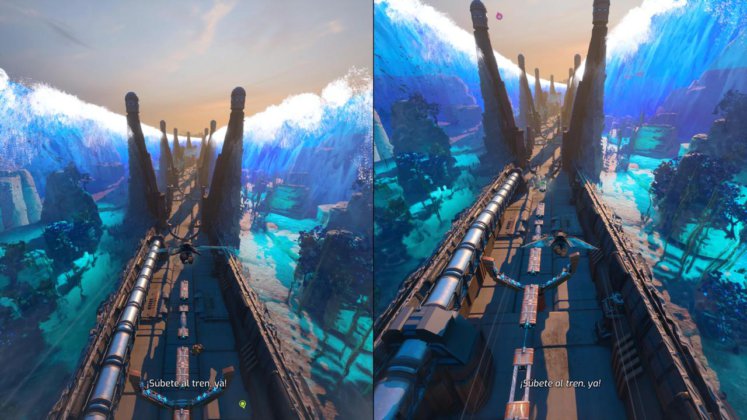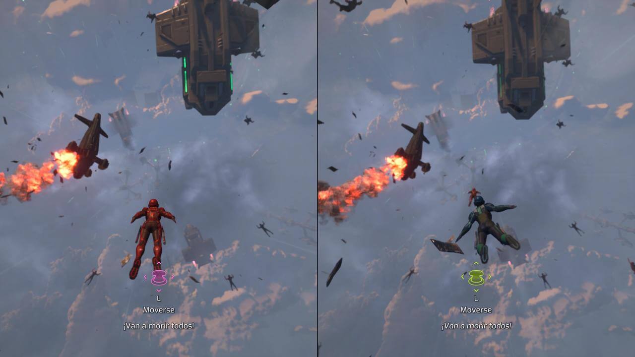 Como en It Takes Two, Split Fiction solo puede jugarse en cooperativo, lo que significa que necesitás un compañero sí o sí. Sin embargo, el juego ofrece un “Pase de amigo”, permitiendo que otra persona juegue sin necesidad de comprar una segunda copia. Además, esta vez hay crossplay, lo que facilita aún más encontrar un compañero con quien jugar. La pantalla sigue viéndose en conjunto para ambos, es decir que se facilita la coordinación en los puzzles, algo que es esencial y casi obligatorio en muchos casos.