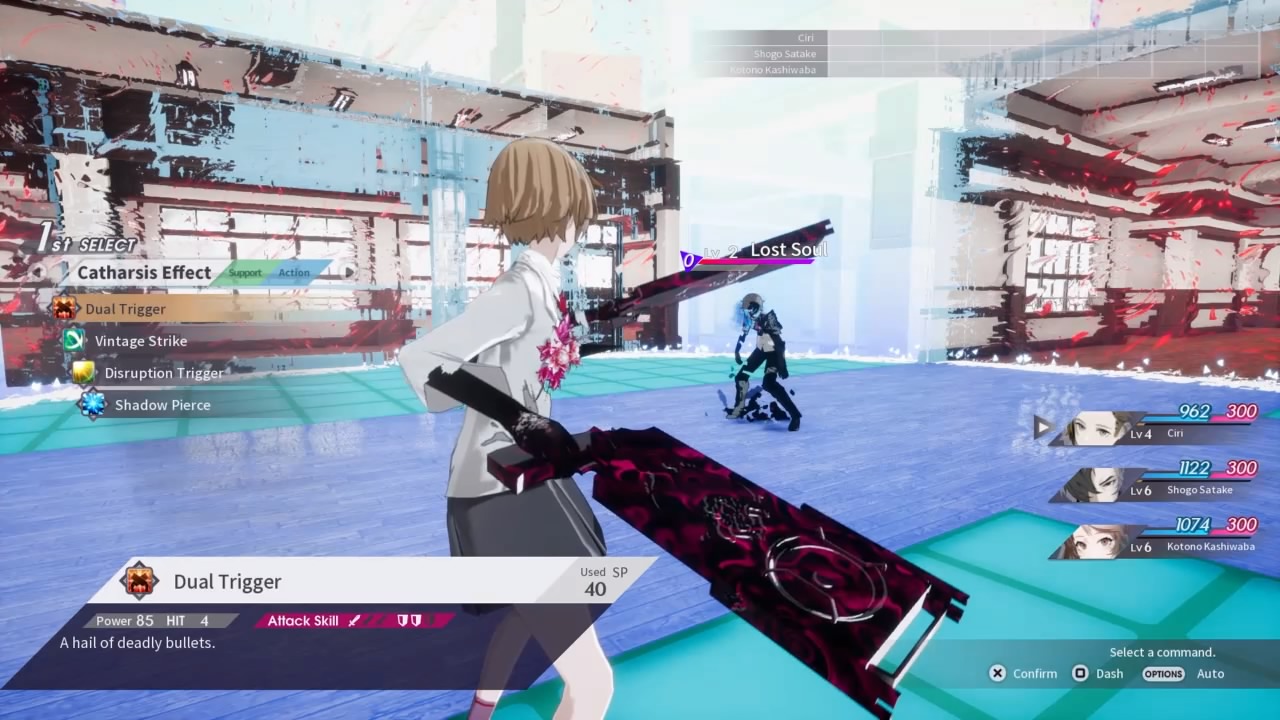 En si hasta acá todo igual, pero notaremos que ahora podemos elegir entre un personaje masculino (el mismo que en PS Vita), o por otro lado a un personaje femenino (la waifu de turno). Como ya jugué al original en su momento, me decidí por jugar con la chica, y básicamente es lo mismo. Nuestro objetivo para escapar de este mundo sera el de ir derrotando a un grupo de músicos que se ponen en nuestro camino los denominados “banda P”. Debo decir que la trama es excelente, el guión esta muy bien ejecutado y sin duda el punto fuerte de esta entrega.