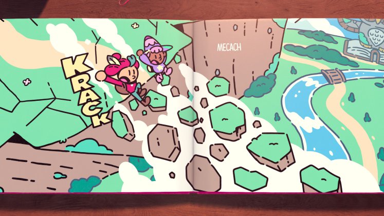 La jugabilidad en The Plucky Squire recuerda a los clásicos de aventuras como The Legend of Zelda, con una vista desde arriba en el mundo 2D. Pero el problema está en que todo lo que este título hace bien, no lo hace “lo suficientemente bien”.