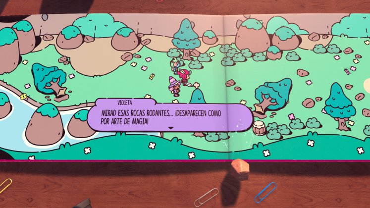 El título continuamente será relatado por una voz en off, y será jugado, como si nuestros límites fueran los bordes del libro. En ocasiones, en horizontal, y en otras apaisado. La idea de estar abstraídos dentro de las hojas, le da una pequeña magia a la jugabilidad, en la cual nos deberemos acostumbrar a que la pantalla será siempre más grande del entorno jugable.