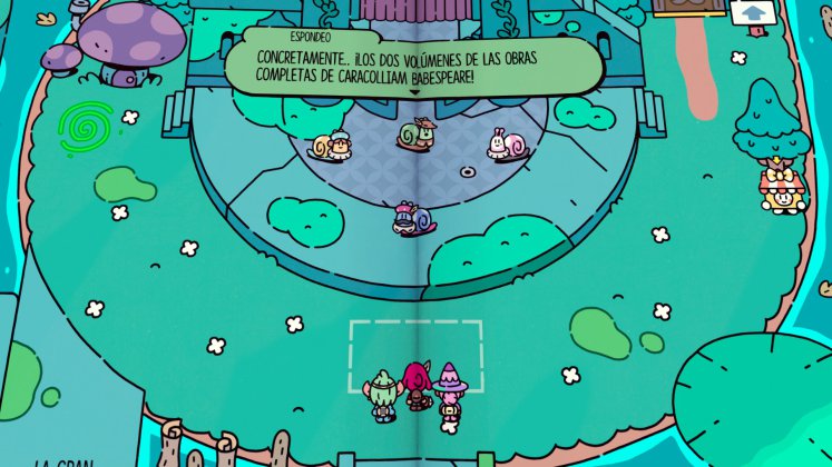 Uno de los aspectos más fascinantes de The Plucky Squire es la forma en que sus personajes lidian con la revelación de que su mundo es parte de una historia ficticia. La sorpresa es momentánea, y luego cada uno de los momentos en que Jota pasa al plano real, se vuelve una conversación graciosa en que sus amigos irónicamente mencionan qué hicieron todo ese tiempo esperando que vuelva, parados en el mismo sitio del libro junto al portal que nos saca.