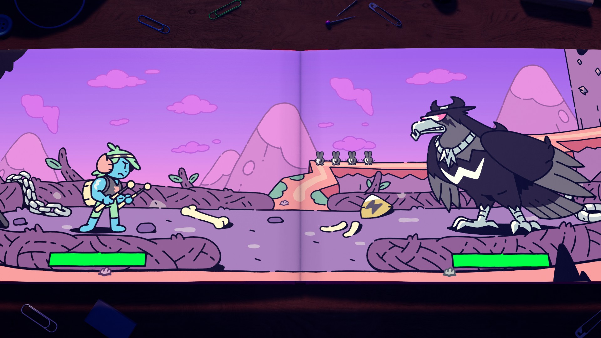 The Plucky Squire quiere destacar por su capacidad de sorprender en cada momento, manteniendo un ritmo que nunca se vuelve repetitivo, pero termina fallando al final, donde cada batalla es una copia de las anteriores. Ya sea en el mundo bidimensional dentro del libro o explorando la habitación de Sam en 3D, el juego logra ofrecer una experiencia memorable.