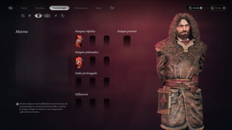 En conexión con esto, el árbol de habilidades está dividido en cuatro rasgos, por así decirlo, e ir subiéndolos nos dará ventajas en los combates, en las acciones que los salutors podrán hacer y también nos habilitará más interacciones con los elementos distribuidos por el mapa.