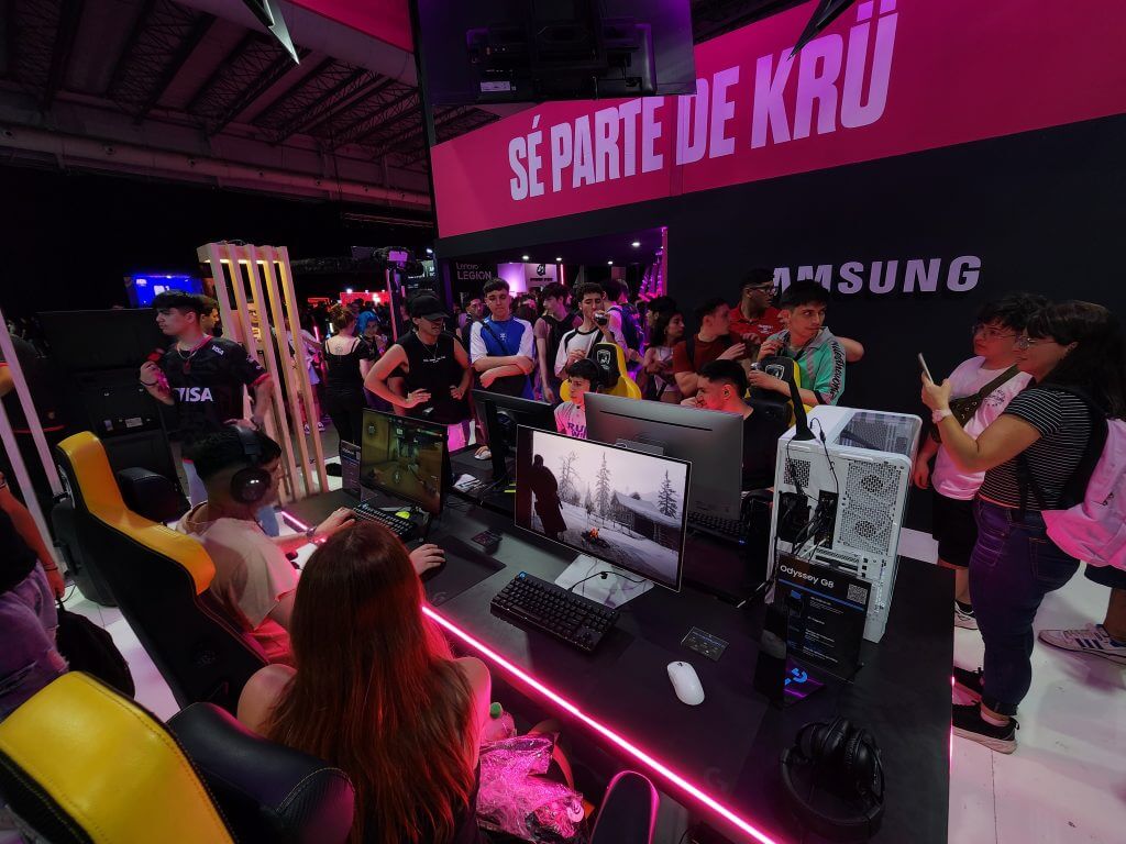Uno de los espacios más concurridos fue el de Samsung Odyssey, con exhibiciones de los nuevos monitores Odyssey 3D G9, Odyssey G8 OLED 4K y el Odyssey G9 49”. El modelo 3D sin gafas, único en Argentina, sorprendió por su resolución 4K, tasa de refresco de 165Hz y compatibilidad con AMD FreeSync Premium y NVIDIA G-SYNC, brindando una experiencia de inmersión total.