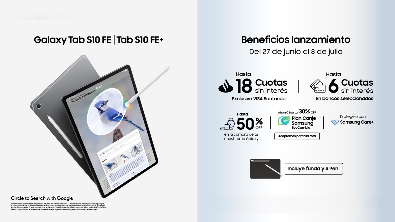 Hasta el 8 de julio, Samsung ofrece una serie de beneficios exclusivos para quienes adquieran una Galaxy Tab S10 FE o S10 FE+, tanto en sus tiendas físicas como a través de su sitio web oficial: