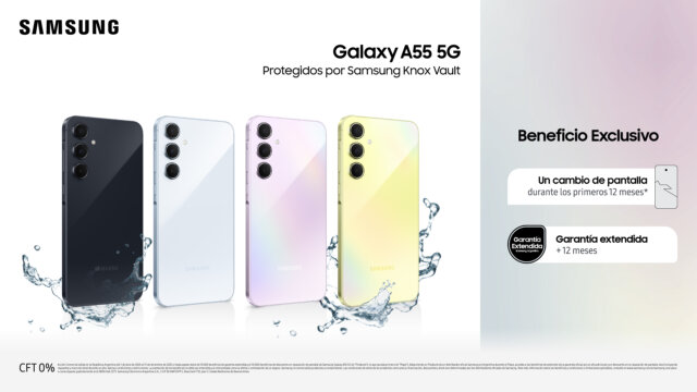 - Cambio de pantalla por rotura: Todos los Galaxy A55 5G vendidos en el país a través de Samsung o distribuidores oficiales tendrán un cambio de pantalla gratuito en caso de rotura durante los primeros doce meses. Además, se ofrece una garantía extendida de dos años.