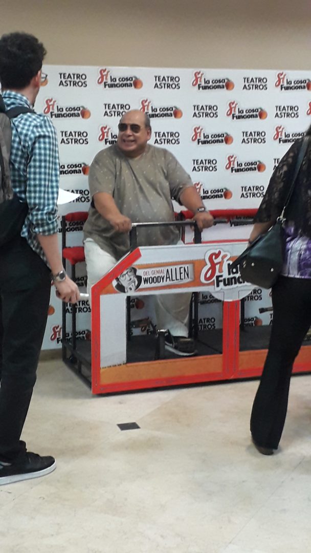 La misma está basada en la película homónima (en inglés, Whatever Works) de Woody Allen, estrenada en 2009. Con la compleja tarea de trasladar la historia a otro formato, podemos decir que lo consigue con buenos resultados. A lo largo de los 90 minutos de duración aproximados, mediante algunos giros y guiños en el guión, se transmite la esencia irónica de Allen. Incluso –los que hayamos visto el film, y sino aquí les dejo su tráiler– recordaremos al actor principal hablándole a la cámara de forma consciente; y ese mismo recurso se mantiene. Para lograrlo se modifica el diseño de luces (creando cierta intimidad), y Luque, a cargo del rol protagónico, se acerca al borde del escenario para abrirse con el público.